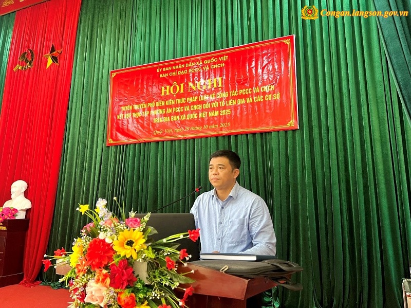 Ngày 29/10/2025, UBND xã Quốc Việt tổ chức hội nghị tuyên truyền, phổ biến kiến thức pháp luật và kết hợp thực tập phương án phòng cháy, chữa cháy (PCCC) và cứu nạn, cứu hộ (CNCH) đối với Tổ liên gia và các cơ sở trên địa bàn xã Quốc Việt năm 2025.