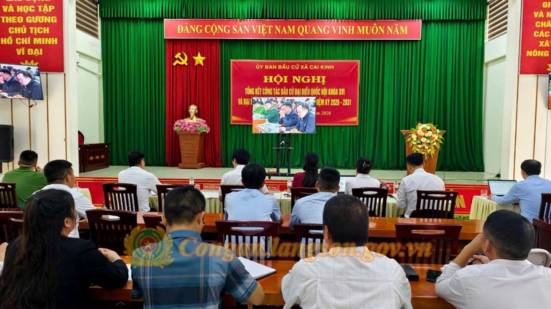 Tại hội nghị, các đại biểu đã được xem video báo cáo kết quả công tác bầu cử trên địa bàn xã. Theo đó, cuộc bầu cử Đại biểu Quốc hội khóa XVI và Đại biểu HĐND các cấp nhiệm kỳ 2026 – 2031 tại xã Cai Kinh được tổ chức thành công, bảo đảm đúng quy định của pháp luật, an toàn, dân chủ và tiết kiệm. Tỷ lệ cử tri tham gia bỏ phiếu đạt 100%. Cơ cấu, số lượng đại biểu Quốc hội và đại biểu HĐND các cấp được bầu đảm bảo đúng quy định.
