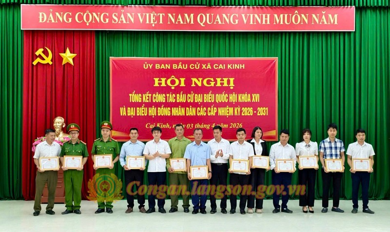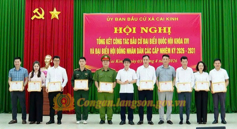 Vinh dự trong dịp này, Tập thể Công an xã Cai Kinh và 04 cán bộ, chiến sỹ được nhận giấy khen của Chủ tịch Ủy ban nhân dân xã Cai Kinh vì đã thành tích xuất sắc trong công tác bầu cử Đại biểu Quốc hội khóa XVI và Đại biểu HĐND các cấp nhiệm kỳ 2026 – 2031.