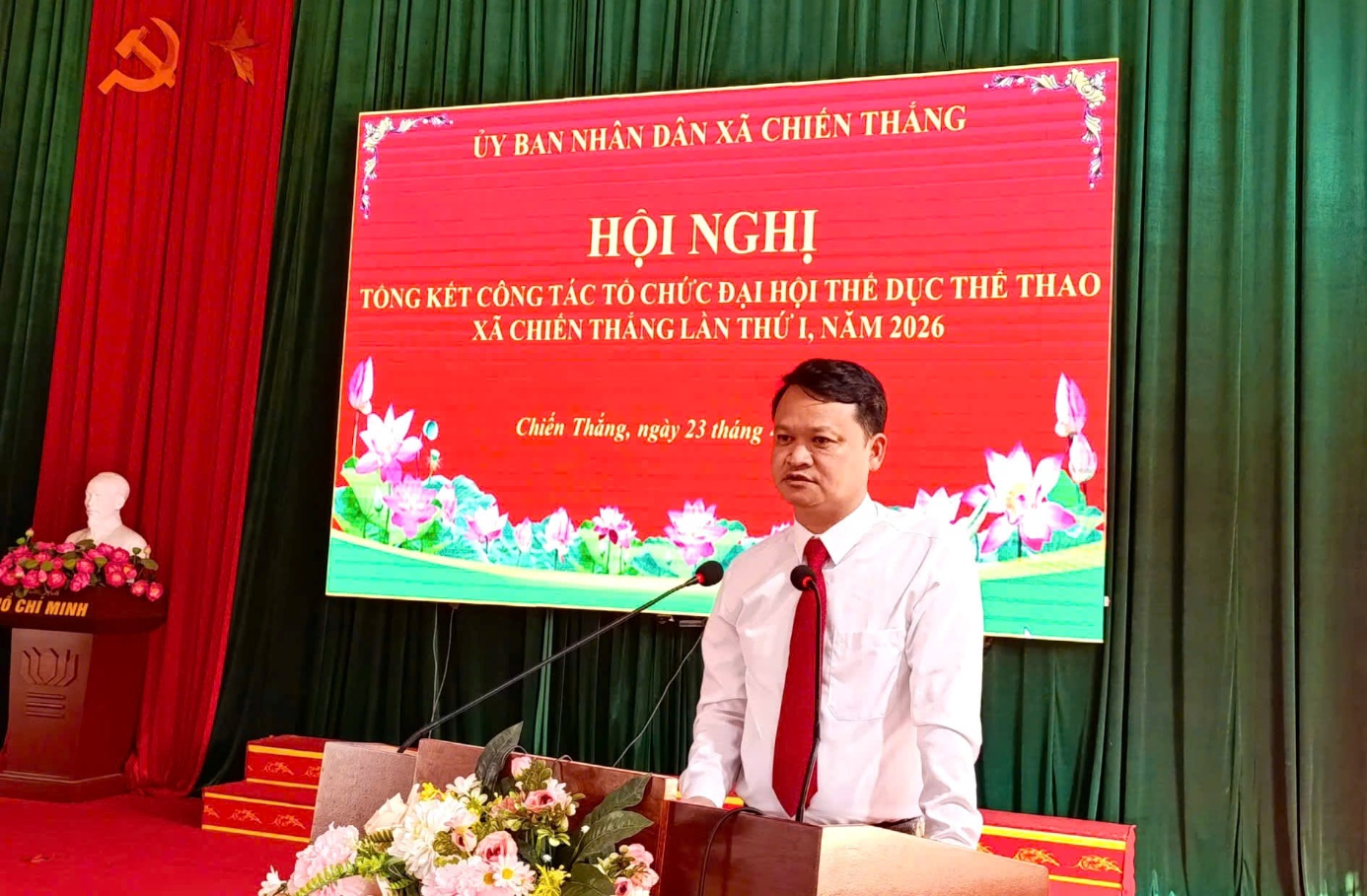Chiều ngày 23/4/2026, UBND xã Chiến Thắng đã tổ chức Hội nghị tổng kết Đại hội Thể dục Thể thao (TDTT) xã Chiến Thắng lần thứ I, năm 2026. Công an xã Chiến Thắng đã tham dự hội nghị cùng các đại biểu của địa phương.