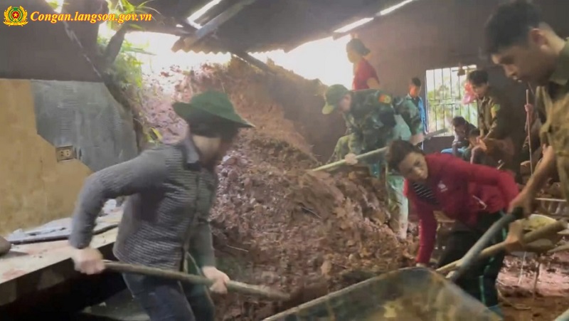 Tại thôn Bản Hang, sau đợt mưa bão gây sạt lở đất, ảnh hưởng đến nhà ở của một số hộ gia đình trên địa bàn, lực lượng Công an xã phối hợp các lực lượng xuống hiện trường giúp khắc phục hậu quả, thu dọn đất đá, hỗ trợ vận chuyển đồ đạc, giúp các hộ dân sớm ổn định cuộc sống.