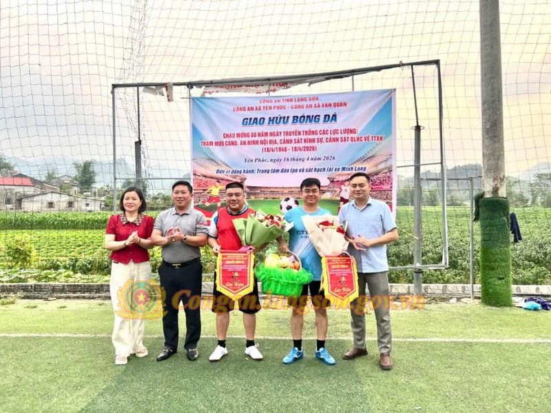 Ngày 16/4/2026, tại Sân bóng Chợ Bãi, xã Yên Phúc, Công an xã Yên Phúc đã chủ trì, phối hợp với Công an xã Văn Quan tổ chức giao hữu bóng đá nam chào mừng kỷ niệm 80 năm Ngày truyền thống các lực lượng Tham mưu CAND, An ninh Nội địa, Cảnh sát Hình sự, Cảnh sát Quản lý hành chính về trật tự xã hội (18/4/1946 - 18/4/2026)