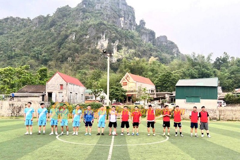Ảnh: Đội bóng Công an xã Yên Phúc và Công an xã Văn Quan vào sân giao hữu