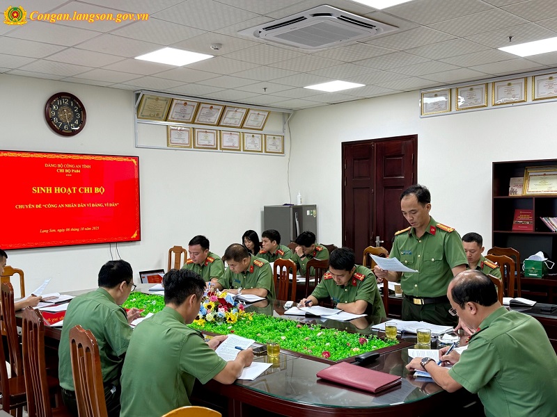 Tại Hội nghị, đồng chí Bí thư Chi bộ đã tổ chức quán triệt Nghị quyết số 16-NQ/ĐUCA, ngày 18/01/2023 của Đảng uỷ Công an Trung ương về “tăng cường công tác chính trị, tư tưởng đáp ứng yêu cầu xây dựng lực lượng Công an nhân dân thực sự trong sạch, vững mạnh, chính quy, tinh nhuệ, hiện đại; Nghị quyết số 56-NQ/ĐUCA, ngày 24/7/2023 của BCH Đảng bộ Công an tỉnh về tăng cường công tác nắm, giải quyết tình hình tư tưởng đảng viên, CBCS giai đoạn 2023 - 2028; Quy định số 09-QĐ/ĐUCA ngày 19/5/2023 của Đảng uỷ CATW về chế độ học tập, thực hiện 06 điều Bác Hồ dạy CAND; Kế hoạch số 130-KH/ĐUCA ngày 01/11/2021 của Đảng uỷ Công an tỉnh về tổ chức triển khai thực hiện Kết luận số 01-KL/TW của Bộ Chính trị về đẩy mạnh học tập và làm theo tư tưởng, đạo đức, phong cách Hồ Chí Minh và đặc biệt là bài viết của đồng chí Đại tướng Tô Lâm, Tổng Bí thư Ban Chấp hành Trung ương Đảng Cộng sản Việt Nam với nhan đề “Công an nhân dân vì đảng, vì dân”.