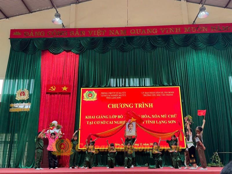 Đại diện Phòng Cảnh sát cơ động tặng hoa, quà tại trường mầm non Quảng Lạc, phường Lương Văn Tri, tỉnh Lạng Sơn