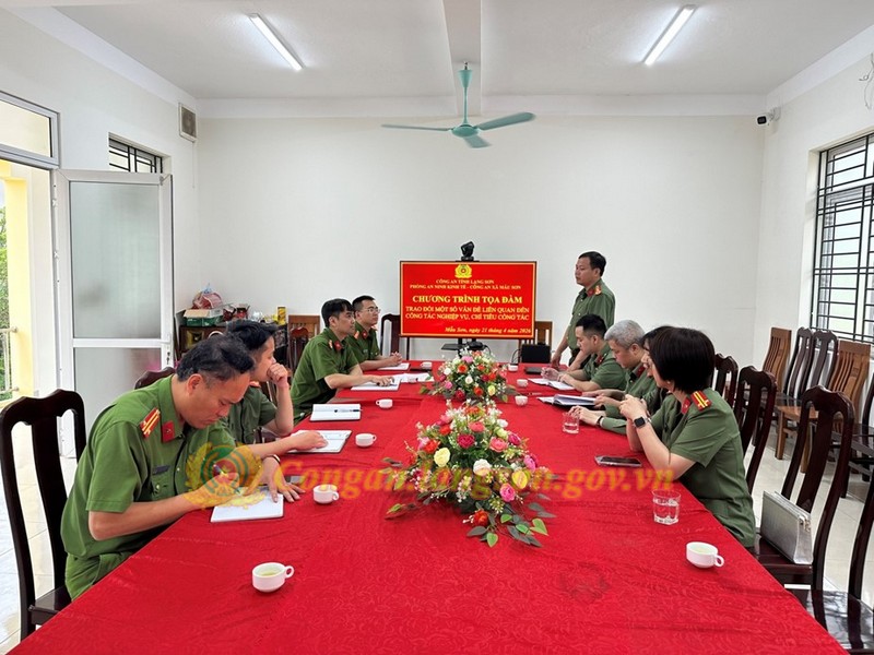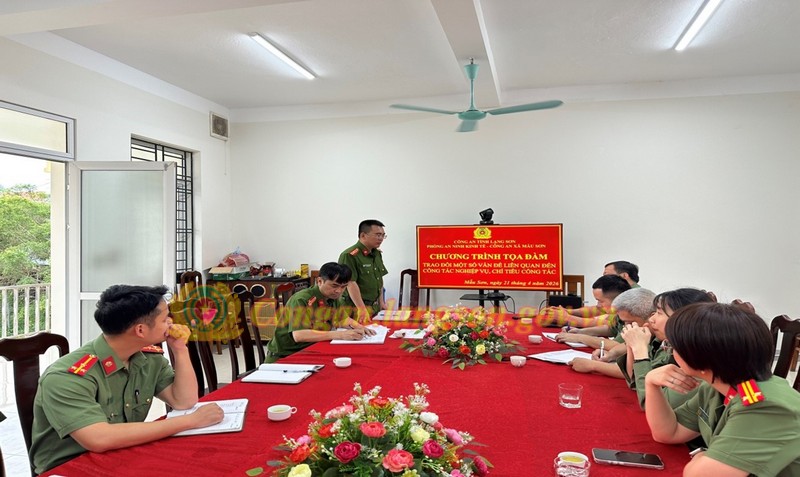 Ngày 21/4/2026, Phòng An ninh kinh tế tổ chức buổi tọa đàm, hướng dẫn nghiệp vụ, triển khai các nội dung trọng tâm về công tác an ninh kinh tế đối với Công an xã Mẫu Sơn. Dự và chỉ đạo có đồng chí Thượng tá Tô Hồng Sông, Phó Trưởng phòng; cùng đại diện chỉ huy các đội nghiệp vụ, cán bộ phụ trách chuyên đề. Về phía Công an xã Mẫu Sơn có đồng chí Thiếu tá Nguyễn Thanh Tuyền, Trưởng Công an xã; đồng chí Trung tá Phạm Hữu Quý, Phó Trưởng Công an xã và toàn thể cán bộ, chiến sĩ.
