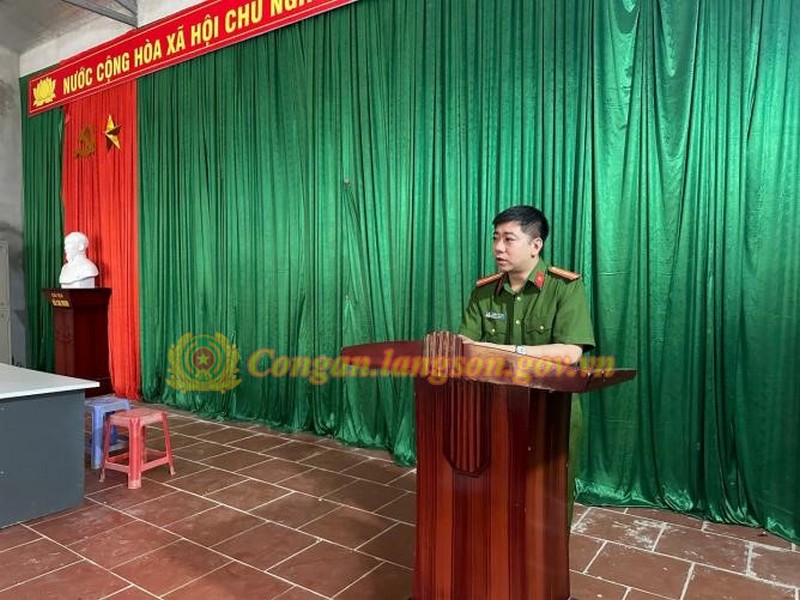 Đ/c Thiếu tá Hoàng Việt Anh - Phó Trưởng Công an xã Khánh Khê tuyên truyền tại hội nghị