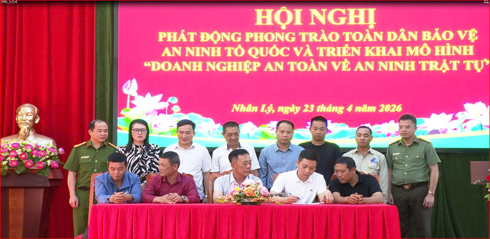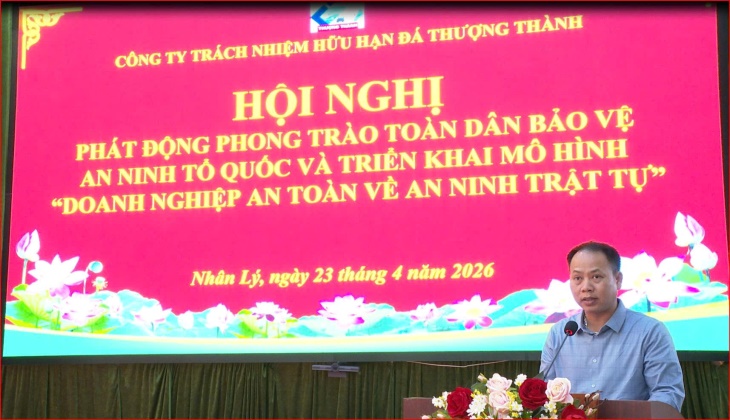 Ngày 23/4/2026, thực hiện các kế hoạch, chương trình công tác năm 2026 về xây dựng phong trào toàn dân bảo vệ an ninh Tổ quốc, Công an xã Nhân Lý phối hợp với Công ty TNHH Đá Thượng Thành tổ chức Hội nghị phát động phong trào và ra mắt mô hình “Doanh nghiệp an toàn về an ninh trật tự”.