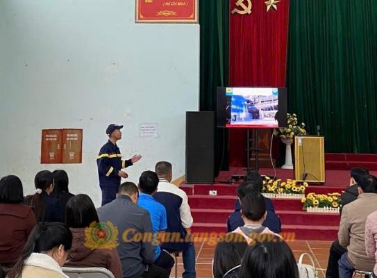 Cán bộ phòng Cảnh sát PCCC và CNCH tuyên truyền kiến thức PCCC,