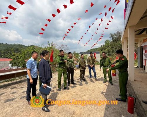 Cán bộ Công an xã Cao Lộc hướng dẫn chi tiết thao tác sử dụng bình chữa cháy xách tay khi có tình huống xảy ra