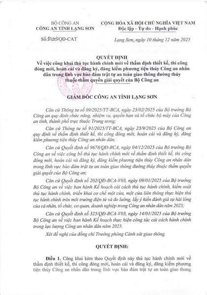 Quyết định Về việc công khai thủ tục hành chính mới thuộc thẩm quyền giải quyết của Bộ Công an