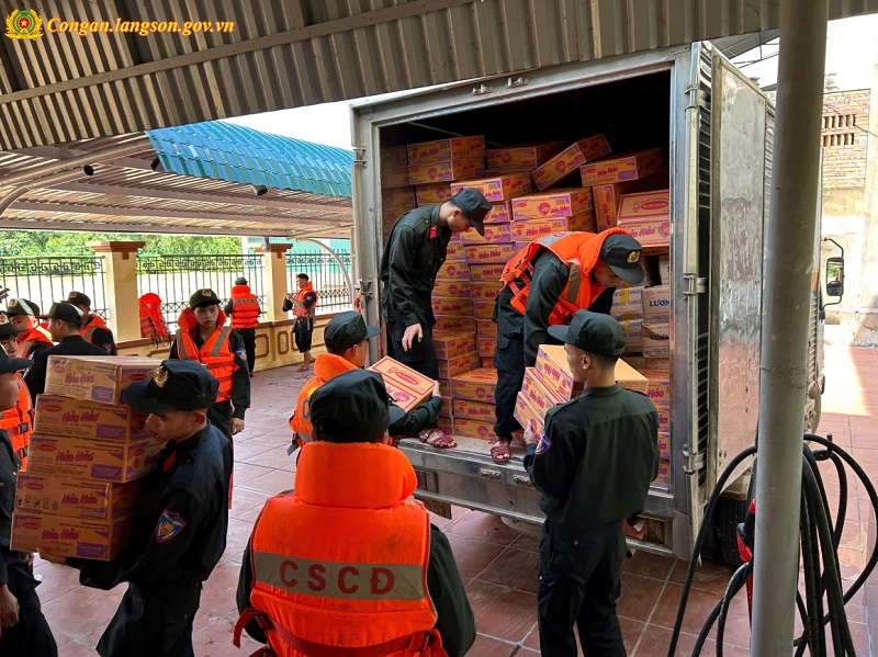 Công an tỉnh Lạng Sơn cung cấp nhu yếu phẩm giúp đỡ nhân dân bị ảnh hưởng bởi mưa lũ