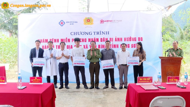 Đây là lần thứ hai Công an tỉnh Lạng Sơn phối hợp với Bệnh viện Đa khoa Hà Nội tổ chức hoạt động nhân đạo đầy ý nghĩa này. Hơn 600 người dân địa phương đã được khám bệnh, phát thuốc miễn phí; cùng với đó, Công an tỉnh đã trao tặng 1.500 lít dầu ăn, 1.270 áo phao và 1.270 cặp sách cho người dân nhằm hỗ trợ ổn định cuộc sống sau bão.