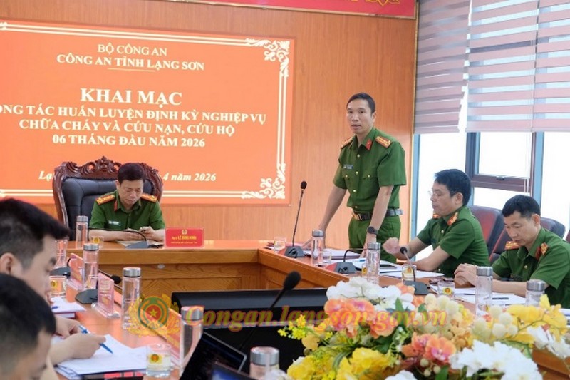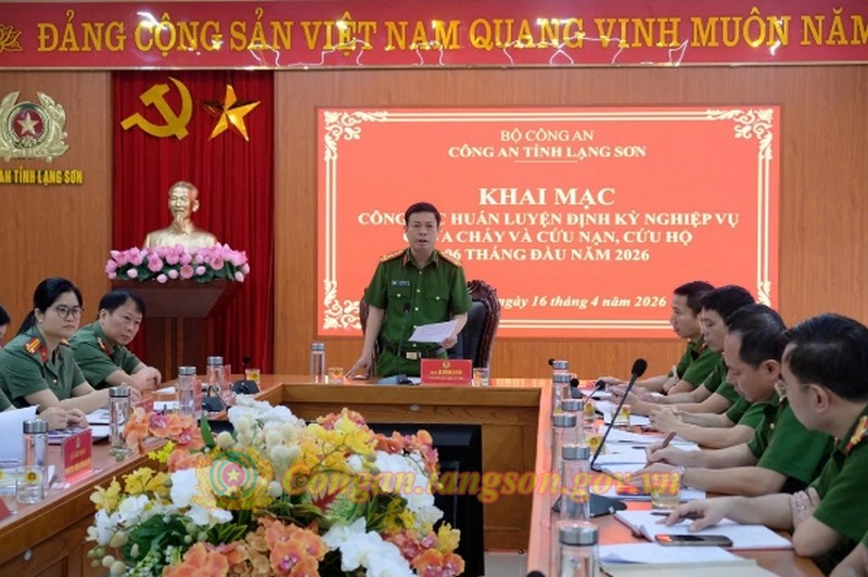 Thực hiện Kế hoạch về việc Huấn luyện, kiểm tra định kỳ nghiệp vụ chữa cháy và cứu nạn, cứu hộ 06 tháng đầu năm 2026, sáng 16/4/2026, Công an tỉnh Lạng Sơn tổ chức Lễ khai mạc khóa huấn luyện nghiệp vụ chữa cháy và cứu nạn, cứu hộ định kỳ 6 tháng đầu năm 2026 cho lực lượng Cảnh sát PCCC và CNCH.