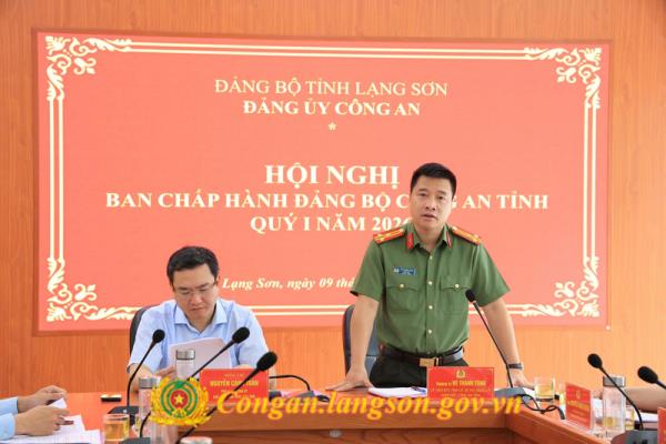 Thứ trưởng Trần Quốc Tỏ trình bày tóm tắt sơ kết công tác công an 6 tháng đầu năm; nhiệm vụ, giải pháp công tác trọng tâm 6 tháng cuối năm 2023 và nhìn lại nửa nhiệm kỳ Đại hội XIII của Đảng (2021 - 2023).