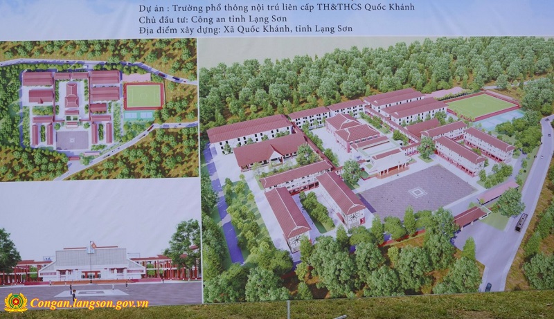 Dự án Trường Phổ thông nội trú liên cấp Tiểu học và Trung học cơ sở Quốc Khánh được UBND tỉnh giao Công an tỉnh Lạng Sơn làm chủ đầu tư, với tổng mức đầu tư dự kiến hơn 340 tỷ đồng. Công trình được xây dựng trên diện tích 6,3 ha gồm 36 phòng học, khu nhà ở học sinh, nhà hiệu bộ, nhà đa năng, khu bếp ăn và các hạng mục phụ trợ khác, đáp ứng quy mô khoảng 1.200 học sinh nội trú. Dự án dự kiến khởi công trong tháng 11/2025 và hoàn thành vào tháng 8/2026, kịp thời phục vụ năm học mới.