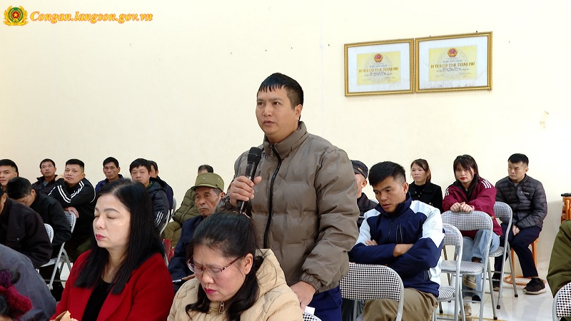 Phát biểu tại hội nghị, đồng chí Đại tá Triệu Tuấn Hải, Phó Giám đốc Công an tỉnh đã cảm ơn người dân đã tham gia, đóng góp ý kiến thẳng thắn, trách nhiệm đối với các vấn đề trên địa bàn. Đối với các vấn đề liên quan đến tài nguyên môi trường, cơ chế chính sách, cơ sở hạ tầng, đồng chí Phó Chủ tịch UBND xã đã trả lời, giải đáp. Các vấn đề liên quan đến an ninh trật tự, đồng chí Phó Giám đốc đề nghị Phòng Cảnh sát Phòng cháy chữa cháy và cứu nạn cứu hộ, Công an xã tổ chức chương trình tập huấn cho người dân trên địa bàn cách sử dụng bình chữa cháy, tuyên truyền Luật an toàn giao thông, Công an xã tăng cường công tác nắm tình hình địa bàn, thường xuyên tuần tra, kiểm soát, phát hiện xử lý nghiêm các trường hợp vi phạm.