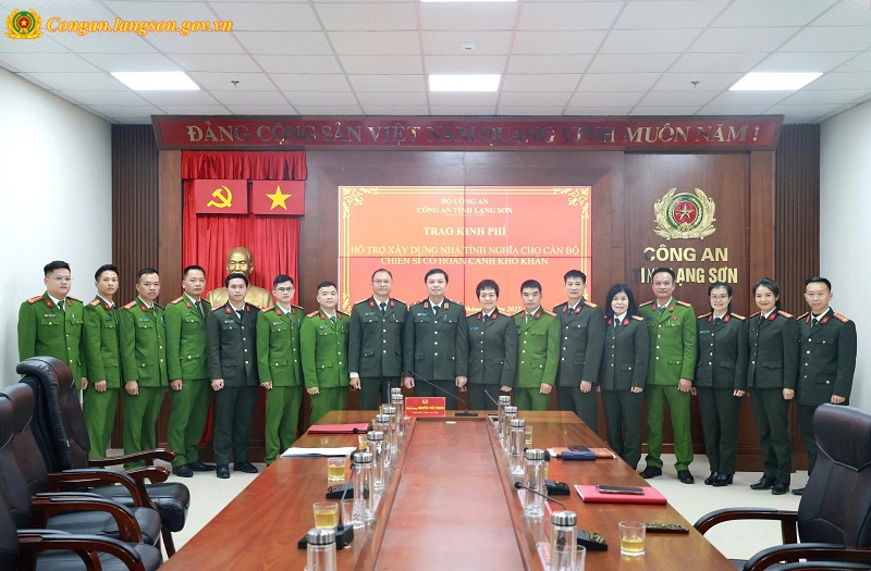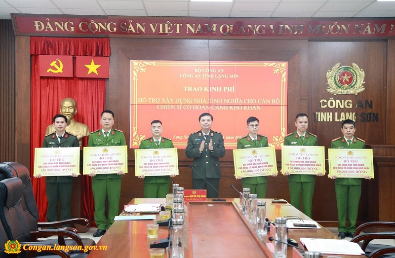 Thực hiện chương trình Nhà tình nghĩa, Công an tỉnh Lạng Sơn đã chủ động khảo sát, lựa chọn các trường hợp cán bộ, chiến sĩ trong lực lương có hoàn cảnh đặc biệt khó khăn về nhà ở để hỗ trợ kinh phí xây dựng hoặc sửa chữa. Trong đợt này, Công an tỉnh lựa chọn 7 cán bộ chiến sĩ để hỗ trợ. Tổng kinh phí hỗ trợ trên 01 tỷ đồng (150 triệu đồng/đồng chí) được trích từ nguồn xã hội hoá. Các đồng chí được hỗ trợ đợt này đều là những cán bộ, chiến sĩ có nhiều nỗ lực, tận tụy, có nhiều thành tích trong công tác.