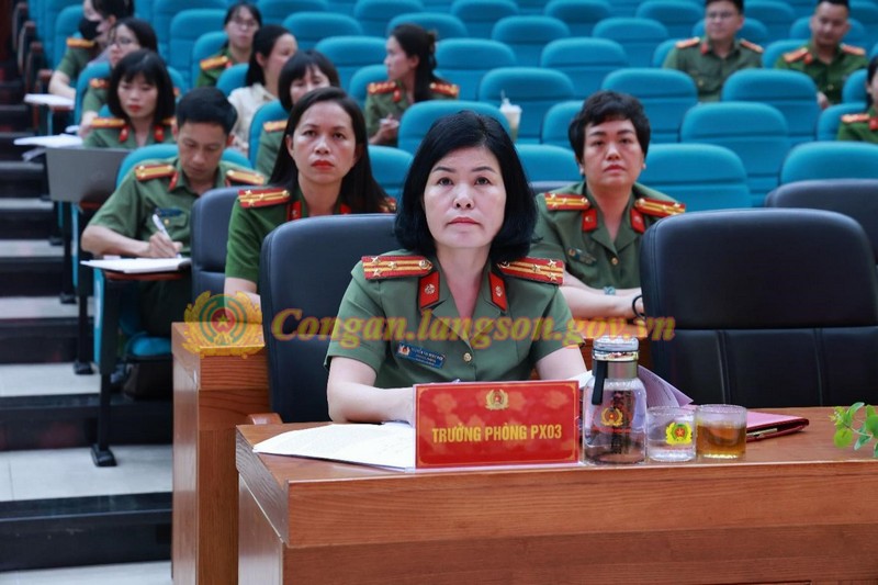 Đồng chí Thượng tá Nguyễn Thị Minh Phú, Trưởng phòng Công tác chính trị, chủ trì tại điểm cầu Công an tỉnh Lạng Sơn