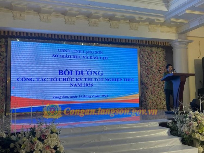 Nhằm nâng cao hiệu quả công tác phối hợp, bảo đảm an ninh, an toàn Kỳ thi tốt nghiệp trung học phổ thông năm 2026, Công an tỉnh Lạng Sơn đã phối hợp với Sở Giáo dục và Đào tạo Lạng Sơn tổ chức hội nghị bồi dưỡng công tác tổ chức thi và kiểm tra kỳ thi cho hơn 200 đại biểu là lãnh đạo các cơ sở giáo dục, Ban tuyển sinh Công an tỉnh, Bộ Chỉ huy Quân sự tỉnh, Bộ đội Biên phòng tỉnh.