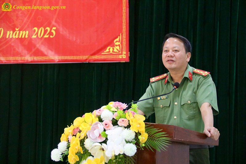 Đại tá Triệu Tuấn Hải, Phó Bí thư Đảng uỷ, Phó Giám đốc Công an tỉnh phát biểu tại hội nghị