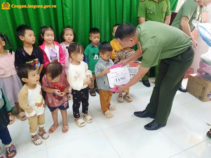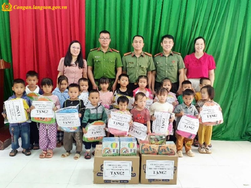 Tại chương trình, Chi đoàn Công an xã đã tặng 20 cặp sách cho 20 em học sinh có hoàn cảnh khó khăn, 120 hộp sáp màu, 120 hộp đất nặn cho công tác dạy và học của nhà trường.