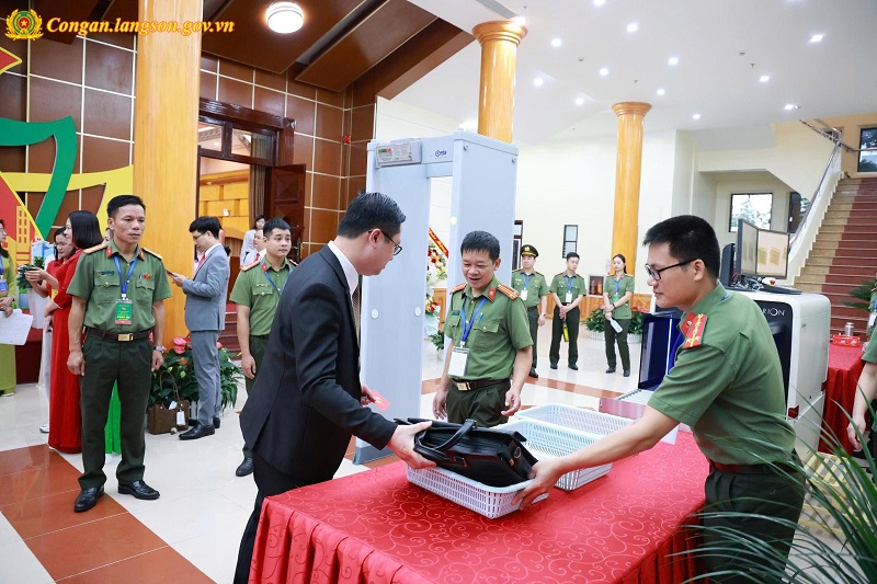 Công an tỉnh triển khai các biện pháp kiểm soát an ninh bằng cổng từ, máy soi chiếu, bảo đảm an toàn tuyệt đối cho Đại hội