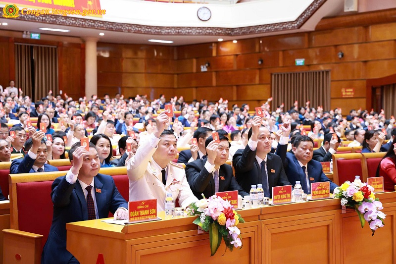 Các đại biểu biểu quyết bầu Ban Chấp hành Đảng bộ tỉnh Lạng Sơn lần thứ XVIII, nhiệm kỳ 2025 - 2030
