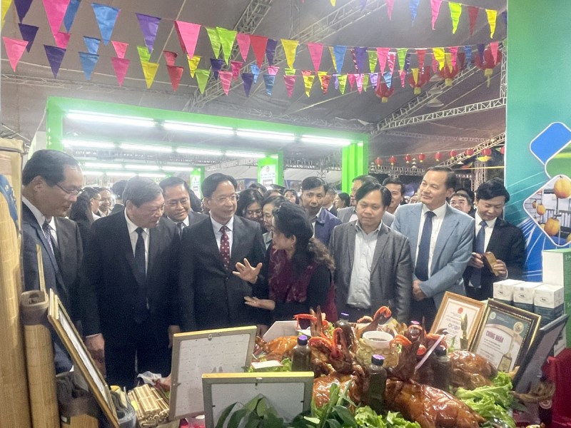 Đồng chí Trần Văn Rón, Ủy viên Trung ương Đảng, Phó Chủ nhiệm Thường trực Ủy ban Kiểm tra Trung ương và các đồng chí lãnh đạo tỉnh Lạng Sơn tham quan gian hàng trưng bày đặc sản địa phương tại hội chợ Thương mại – Du lịch quốc tế Việt Trung Lạng Sơn năm 2024.