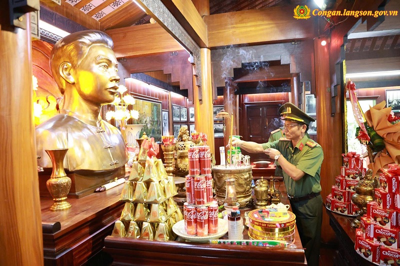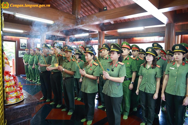 Đoàn đại biểu, học viên lớp Trung cấp LLCT tại Học viện Chính trị CAND và Công an tỉnh Lạng Sơn dâng hoa, dâng hương tại nhà tưởng niệm đồng chí Hoàng Văn Thụ