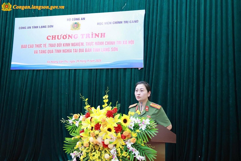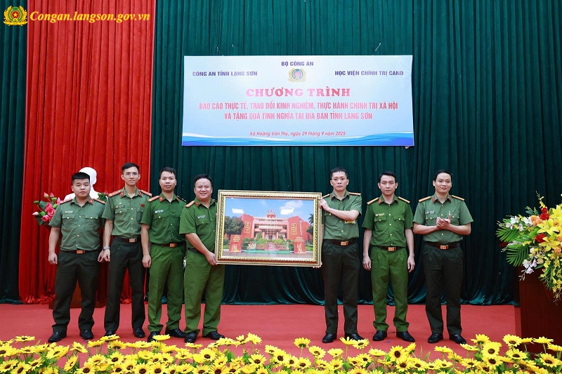 Ngày 29/9/2025, trong khuôn khổ chương trình học tập, rèn luyện của lớp Trung cấp Lý luận chính trị hệ không tập trung, khóa I năm 2025, Học viện Chính trị Công an nhân dân (CAND) đã phối hợp với Công an tỉnh Lạng Sơn tổ chức hoạt động thực tế chính trị – xã hội, báo cáo chuyên đề và các hoạt động tình nghĩa tại xã Hoàng Văn Thụ. Đoàn công tác do Thượng tá Nguyễn Đình Thiện, Trưởng khoa Lịch sử Đảng và Tư tưởng Hồ Chí Minh, Học viện Chính trị CAND làm Trưởng đoàn. Tham dự có đại diện Phòng Quản lý đào tạo và bồi dưỡng nâng cao Học viện Chính trị CAND; về phía Công an tỉnh Lạng Sơn có lãnh đạo các phòng: Tham mưu, An ninh chính trị nội bộ, Tổ chức cán bộ cùng Công an xã Hoàng Văn Thụ.