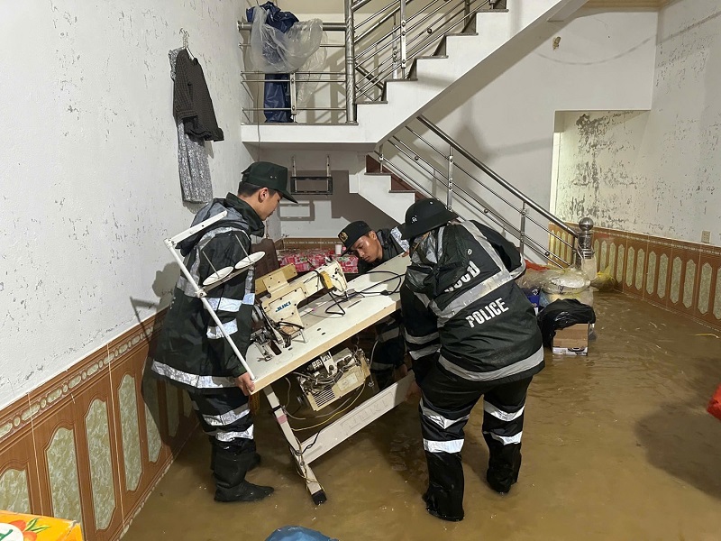 Tiểu đoàn 3, Trung đoàn CSCĐ Tây Bắc hỗ trợ sơ tán, di chuyển người và tài sản những nơi bị ngập và nguy cơ bị ngập úng trên địa bàn phường Nam Cường, tỉnh Lào Cai.