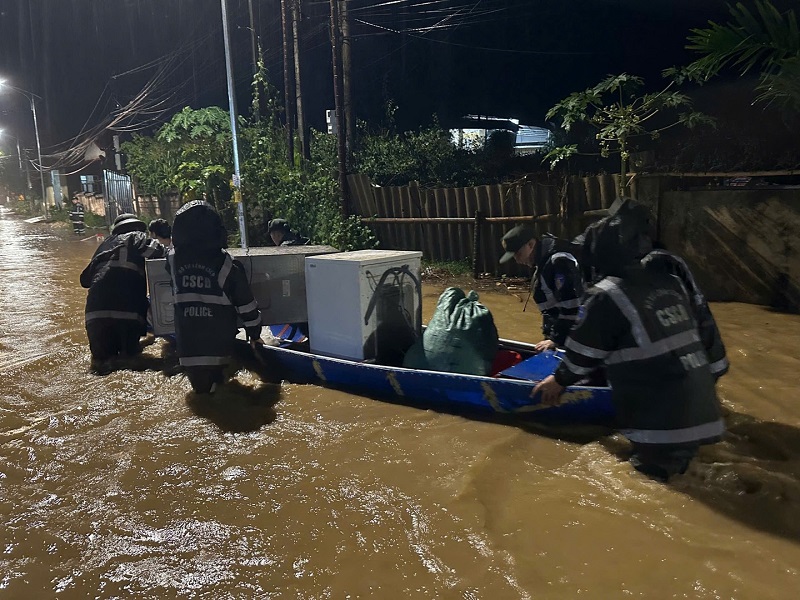 *Tại Lào Cai, do ảnh hưởng của cơn bão số 10, từ đêm ngày 28/9/2025 đến nay các khu vực trên địa bàn tỉnh Lào Cai có mưa to đến rất to, xảy ra ngập úng cục bộ ở một số địa điểm. Ban chỉ huy Trung đoàn CSCĐ Tây Bắc đã nhanh chóng chỉ đạo Tiểu đoàn 3 khẩn trương chuẩn bị lực lượng, quân tư trang, vật chất cần thiết ra quân hỗ trợ sơ tán, di chuyển người và tài sản những nơi bị ngập và nguy cơ bị ngập úng trên địa bàn phường Nam Cường, tỉnh Lào Cai.