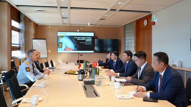 *Cùng ngày, đoàn công tác của Bộ Công an cũng đã đến thăm Đại học Cảnh sát Quốc gia Na Uy và được ông Kjell Eirik Mortensen, Phó Hiệu trưởng Đại học Cảnh sát Quốc gia Na Uy giới thiệu về trường. Hai Bên thống nhất tăng cường hợp tác trong lĩnh vực nâng cao năng lực giữa các cơ sở đào tạo, trong đó có đào tạo và xây dựng mô hình huấn luyện chung cho lực lượng gìn giữ hòa bình Liên hợp quốc; trao đổi giảng viên, học viên để học tập, chia sẻ kinh nghiệm thực tiễn; đồng thời nghiên cứu khả năng ký kết văn bản hợp tác giữa Đại học Cảnh sát Na Uy và các Trường thuộc Bộ Công an Việt Nam.
