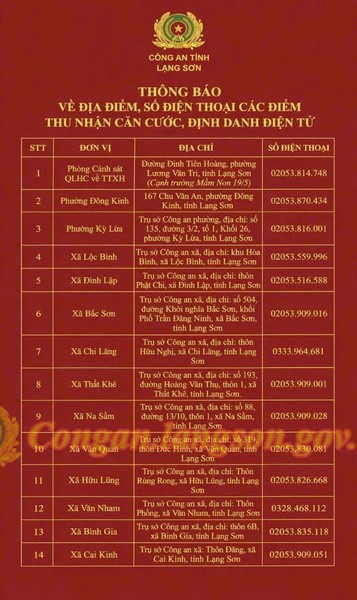 Theo đó, nhằm tạo điều kiện tối đa cho những công dân trong độ tuổi ưu tiên chưa làm thủ tục cấp Căn cước; tài khoản định danh điện tử mức độ 2 được nghỉ lễ Giỗ Tổ Hùng vương, 30/4 và 01/5/2026, Công an Lạng Sơn tổ chức cấp Căn cước và tài khoản định danh điện tử mức độ 2, làm cả ngoài giờ hành chính và xuyên suốt các ngày thứ Bảy, Chủ nhật, ngày nghỉ lễ Giỗ Tổ Hùng Vương, 30/4 và 01/5/2026 đến hết ngày 10/5/2026 tại 14 điểm cấp căn cước trên địa bàn tỉnh, có địa chỉ cụ thể: