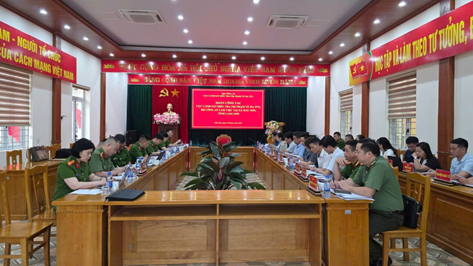 Đoàn công tác ghi nhận và đánh giá cao những kết quả mà UBND xã và Công an xã Mẫu Sơn đã đạt được trong thời gian qua, đặc biệt là sự chủ động trong công tác tham mưu, triển khai đồng bộ các biện pháp nghiệp vụ, góp phần giữ vững an ninh trật tự trên địa bàn.