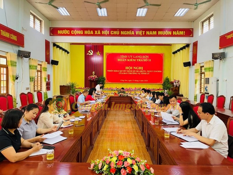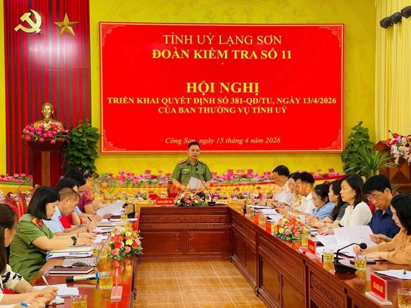 Thực hiện quy trình kiểm tra, sáng ngày 15/4/2026, tại hội trường UBND xã Công Sơn, Đoàn Kiểm tra số 381 của Ban Thường vụ Tỉnh ủy đã tổ chức Hội nghị triển khai quyết định kiểm tra đối với Ban Thường vụ Đảng ủy các xã: Đồng Đăng, Cao Lộc, Công Sơn, Ba Sơn.