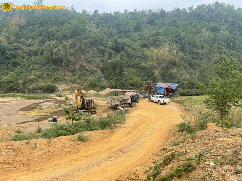Hiện trường một vụ khai thác cát, sỏi trái phép ở xã Quý Hòa do Phòng Cảnh sát kinh tế, Công an tỉnh Lạng Sơn đã phát hiện, bắt giữ