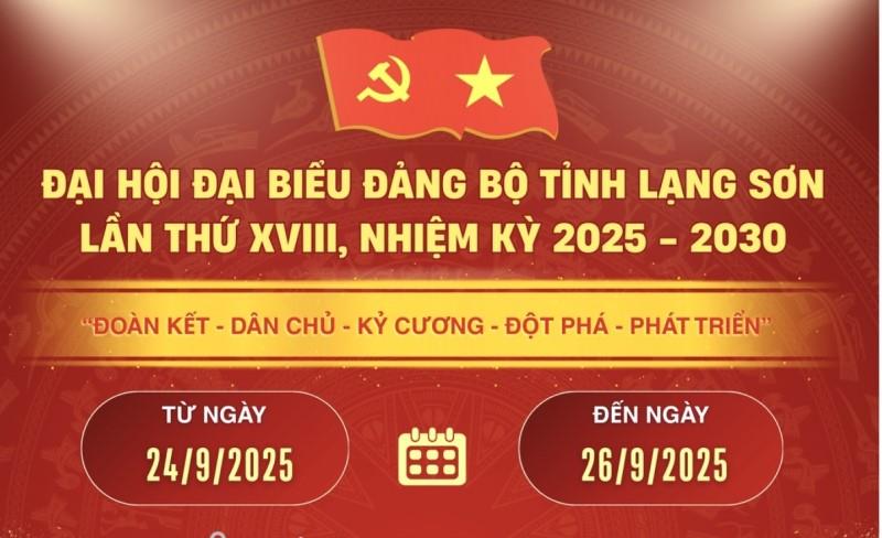 Với tinh thần "Đoàn kết - Dân chủ - Kỷ cương - Đột phá - Phát triển", Đại hội đại biểu Đảng bộ tỉnh Lạng Sơn lần thứ XVIII nhiệm kỳ 2025 -2030 được kỳ vọng sẽ mở ra một giai đoạn mới, hiện thực hóa mục tiêu đưa Lạng Sơn trở thành một cực tăng trưởng năng động của vùng trung du và miền núi Bắc bộ.
