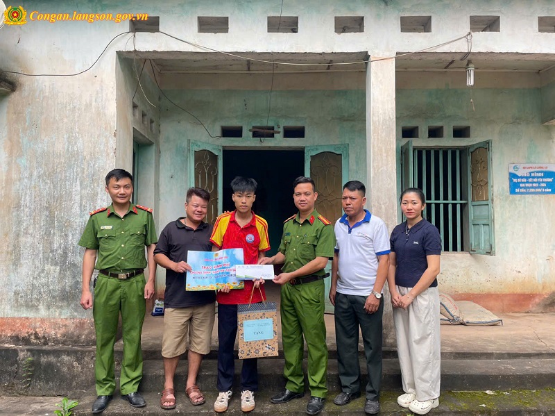 Công an xã tổ chức tặng quà cho học sinh trong Chương trình “Ngày mai tươi sáng” của Công an tỉnh
