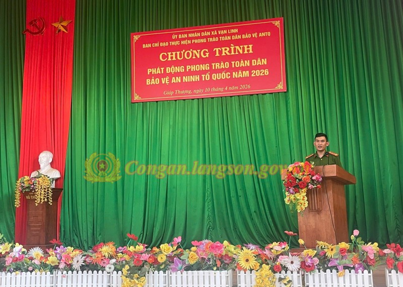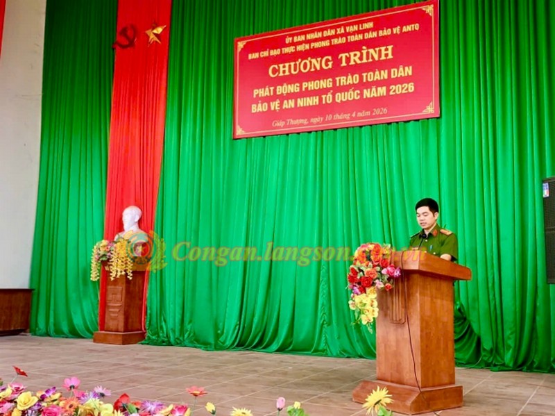 Chiều ngày 10/4/2026, tại Nhà văn hóa thôn Giáp Thượng, Công an xã Vạn Linh đã chủ trì, tham mưu cấp ủy, chính quyền địa phương tổ chức Chương trình phát động phong trào “Toàn dân bảo vệ an ninh Tổ quốc” năm 2026. Đây là hoạt động có ý nghĩa quan trọng nhằm phát huy sức mạnh tổng hợp của cả hệ thống chính trị và toàn dân trong công tác bảo đảm an ninh, trật tự tại cơ sở.