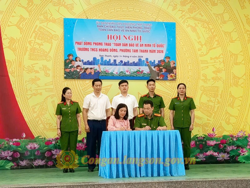 Bên cạnh đó, hội nghị đã được chứng kiến đại diện Công an phường Tam Thanh và Trường THCS Hoàng Đồng ký kết bản giao ước thi đua, phối hợp trong công tác bảo vệ an ninh trật tự và thực hiện phong trào toàn dân bảo vệ an ninh Tổ quốc năm 2026.