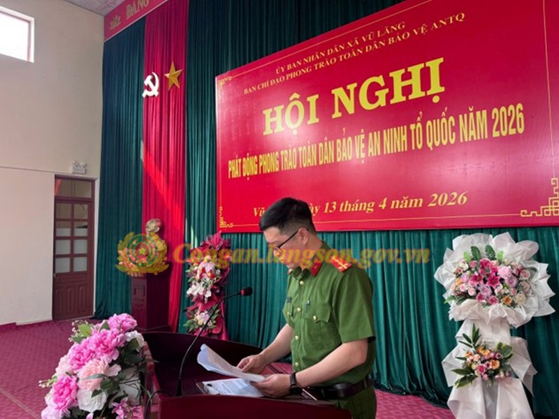 Chiều ngày 13/4/2026, xã Vũ Lăng đã long trọng tổ chức Hội Nghị phát động phong trào toàn dân bảo vệ an ninh Tổ quốc năm 2026.