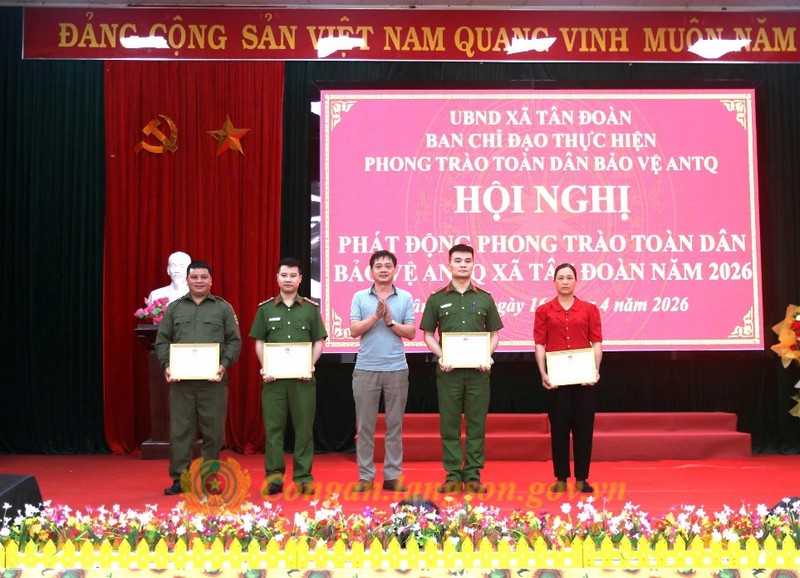 Ngày 16/4/2026, Ban Chỉ đạo thực hiện phong trào toàn dân bảo vệ an ninh Tổ quốc xã Tân Đoàn, tỉnh Lạng Sơn đã tổ chức Hội nghị phát động phong trào “Toàn dân bảo vệ an ninh Tổ quốc” năm 2026.