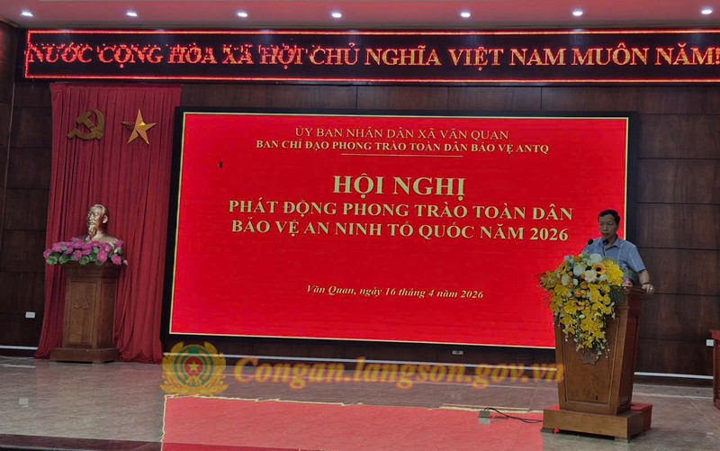 Để tiếp tục phát huy những thành quả đạt được và tạo khí thế thi đua sôi nổi, phát huy vai trò, trách nhiệm của các cơ quan, ban ngành, các tổ chức chính trị xã hội và Nhân dân trong công tác đảm bảo an ninh trật tự và xây dựng phong trào toàn dân bảo vệ ANTQ. Sáng ngày 16/4/2026, xã Văn Quan tổ chức Hội nghị phát động phong trào toàn dân bảo vệ ANTQ năm 2026. Dự Hội nghị có đồng chí Nông Thanh Hoàng Phó Bí thư Thường trực Đảng ủy xã; đồng chí Nguyễn Văn Sáng Phó Bí thư Đảng ủy, Chủ tịch UBND xã, Trưởng Ban chỉ đạo phong trào; Đại diện các cơ quan, ban, ngành, đoàn thể; lực lượng Công an xã; các đồng chí Bí thư chi bộ, Trưởng thôn, Tổ an ninh trật tự, người có uy tín trong cộng đồng dân cư.