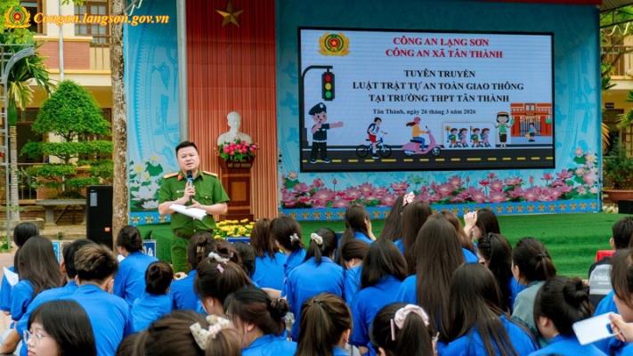 Nhân dịp chào mừng kỷ niệm 95 năm thành lập Đoàn TNCS Hồ Chí Minh (26/3/1931 - 26/3/2026), ngày 26/3/2026, Công an xã Tân Thành đã phối hợp với Trường THPT Tân Thành tổ chức buổi tuyên truyền, phổ biến kiến thức về trật tự an toàn giao thông với mong muốn nâng cao nhận thức về các quy định của pháp về trật tự an toàn giao thông đối với các em học sinh khi còn ngồi trên ghế nhà trường; giảm thiểu tai nạn giao thông nói chung, tai nạn giao thông đối với lứa tuổi học sinh nói riêng. Buổi tuyên truyền có sự tham gia của hơn 800 học sinh và 51 cán bộ, công nhân viên các nhà trường.